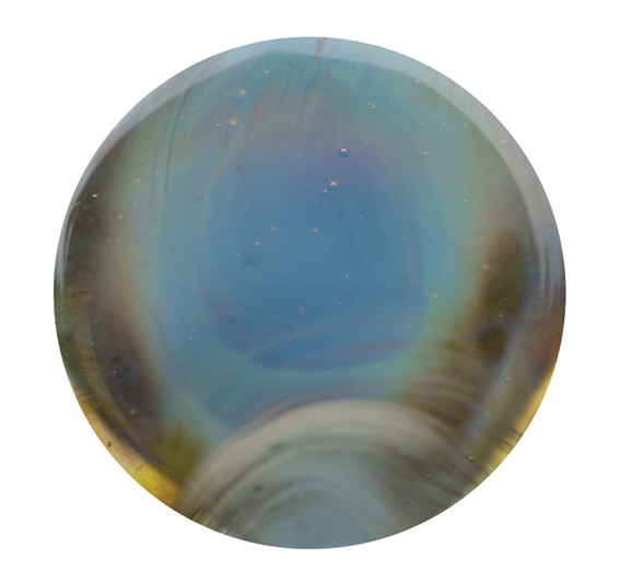 Anlauffarbe mit schönen hellgrünen – blauen und lila Farbtönen. Ist ein helles Blau welches hell Gelb/bernstein anläuft. Ist sehr leicht und in jeder Flamme zu verarbeiten.