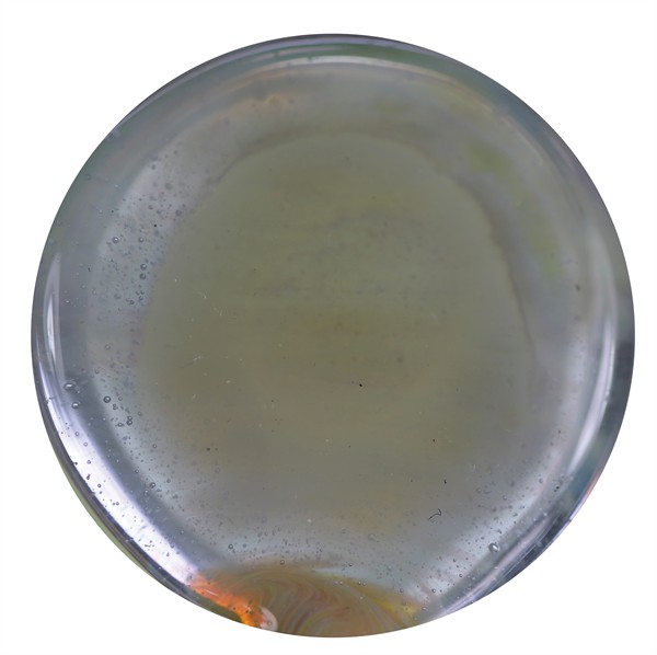 Es ist glatt und leicht zu bedienen. Reicht vom transparenten Bernstein zu einem opaken cremigen Grün. Je länger es bearbeitet wird – desto opaker wird es.