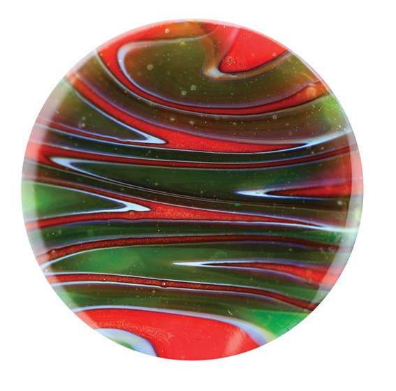 Dieses mehrfarbige Glas enthält rote & grüne Streifen – die von dünnen weißen Streifen getrennt werden.