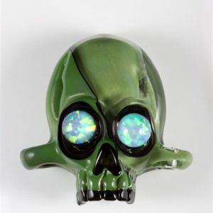 Ist ein gesättigtes vollständig opakes Pflanzengrün. Es kann gestreckt werden für Stringer Anwendungen oder für dünne Blasarbeiten benutzt werden. Mit der Neuformulierung des Glases kann es in einer noch heißeren Flamme bearbeiten werden, aber bitte darauf achten, dass die Farbe nicht überhitzt wird.