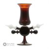 Bernsteinfarbenes-lila Glas – welches viel Rosa und Lila – und eher weniger Bernstein enthält. Im Ofen kann er mehr Farbe bekommen – aber in der Flamme gibt er viel Rosa besonders über einer Basis von Weiß.